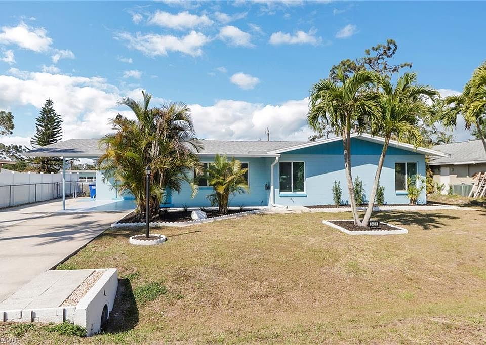 Newly Renovated 3 Bedroom, 2 Bath Ranch located in the Fort Myers Villas. NO HOA! New in 2022; Roof, Soffits, Gutters, Impact Resistant Windows, HVAC System, Hot Water Tank, Kitchen & Bathroom White Cabinets with Granite Countertops and Sinks, Vinyl Flooring and Carpet. Master Bath has a new tiled shower. All new Lighting Fixtures and Ceiling Fans. Separate Laundry Room off the carport comes with new Whirlpool Washer and Dryer and a utility tub. Seller to Provide Kitchen Appliance Allowance in the Amount of $2,500. Many other updates you just need to come and see. Large Fenced in back yard is great for Kids, Pets or even a pool. Location has easy access to Shops, Restaurants and Airports.