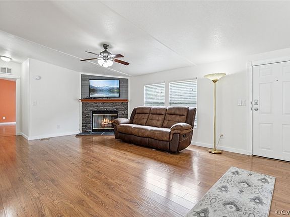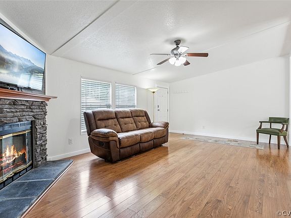 - Bedroom on Main Level, Ceiling Fan(s), Eat-in Kitchen, Fireplace, Kitchen Island, Main Level Primary, Walk-In Closet(s)