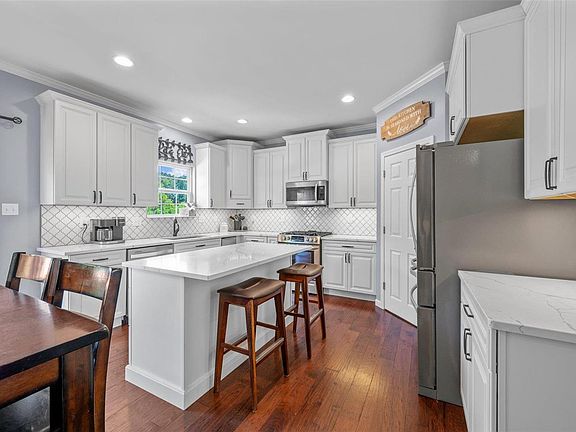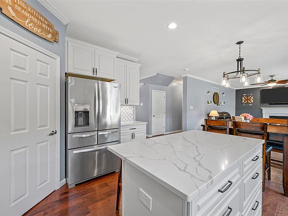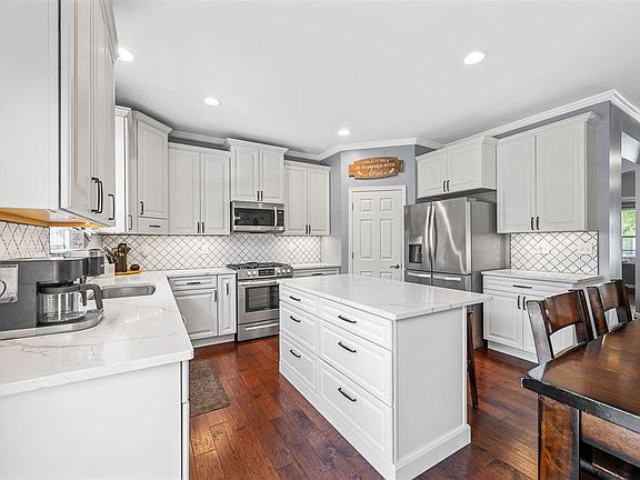 This stunner offers nearly 3600 sqft of living space! You will absolutely LOVE the amazing kitchen complete w/crisp, white 42 inch multi-height cabinetry, crown, marbled quartz countertops, custom tile backsplash, built-in cabinetry ice maker & walk in pantry! The center island breakfast bar has nice deep drawers! Gorgeous wood flooring begins at the foyer & flows through the main level! The sunlit main floor office offers beautiful glass french doors. Enjoy the large eat-in kitchen/breakfast room or the separate dining room! The marble surround gas fireplace anchors the living room. Primary bedroom suite is updated w/ adult height, quartz topped double vanity & features custom closet organization in the walk in closet! 3 additional beds upstairs, full bath & loft for flexible living space. The walk-out, finished out lower level has potential as a multi-gen household w/spacious rec room, kitchenette, bonus room, full bath Other recent updates-roof, siding & gutters!