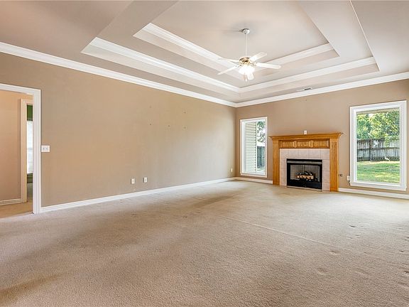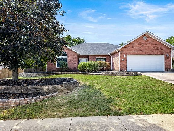 Welcome to this inviting 4-bedroom, 2-bathroom home offering 2,071 sqft of comfortable living space. The thoughtful split floor plan provides both privacy & functionality, w/ a seamless flow throughout. From the front door, step into a spacious living room featuring a cozy gas fireplace. The bright and airy kitchen offers plenty of room to cook & gather, featuring a breakfast nook with a large window overlooking the backyard. A formal dining room adds extra space for entertaining & hosting special occasions. The primary suite is a relaxing retreat, featuring a walk-in shower, jetted tub, & a large walk-in closet. On the opposite side of the home, you’ll find three additional bedrooms & full bath. Located just minutes from Johnson Square, Northwest Arkansas Mall, eateries, entertainment and offering easy access to I-49, this home combines convenience with comfort. Sept 2022 Pella Windows, & Roof. 2018 water heater and garage door motor replaced.