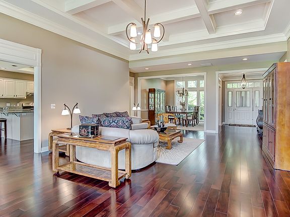 Elegant former model villa located overlooking the 18th hole of the Autumn Ridge Golf Course. The foyer entrance leads into the majestic living room with wide windows overlooking the golf course and a mirrored fireplace. New Brazilian cherry floors add to the overall opulence and carry into the large formal dining room with French doors. Kitchen has custom cabinets, as well as updated fixtures. Three season room is off the breakfast area and is a great place to have a morning coffee overlooking the course. The large master bedroom has a window seat with a great view, beautiful master bath and huge his and hers closets. The home boasts a huge amount of storage with several closets throughout. The garage is a three car garage with a side garage door that leads to the golf course and is perfect for your golf cart. Villa has been lovingly maintained on the interior and exterior maintenance is completed by the association.