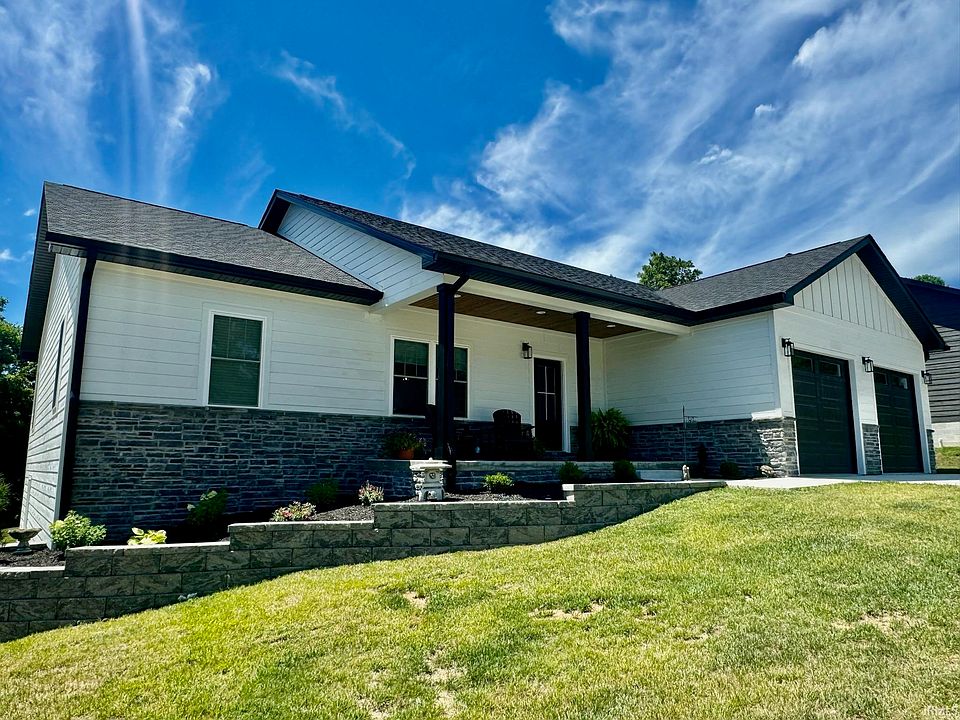 Fantastic 3 BR, 2 BA home located in established Southern Fields Subdivision conveniently located right off 37 N/S for an easy commute. With approximately 1750 sq ft of finished living space, this home built in 2023 offers one level living, 2 car attached garage, large outside entrance storage room, nice back deck, and many interior upgrades including custom cabinetry, granite counters, walk in tile shower, walk in closets and more. High efficiency inline tankless water heater, upgraded appliances, high efficiency furnace make for manageable utility bills. Covenants and restrictions apply. Taxes reflect land only.