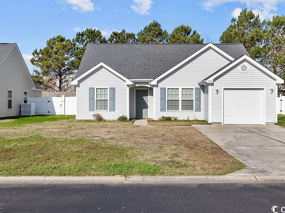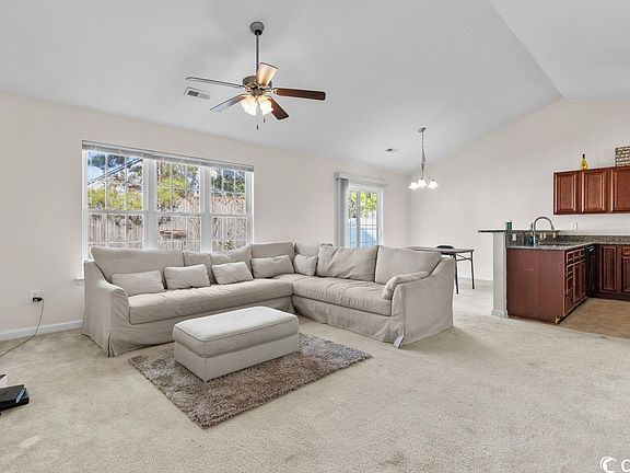 Envision being adjacent to Market Common at this price point! You'll feel right at home in this charming 3 bedroom, 2 bathroom home with a 1 car garage. You'll love the open floor plan with vaulted ceilings and a single car garage that opens into the kitchen for easy unloading of groceries. The "L" shaped kitchen with granite counter tops has plenty of counter space and cabinets with laundry closet nearby. Toward the rear of the home, overlooking the private backyard, is the main bedroom with an ensuite and a walk-in closet; while bedrooms #2 and #3 share a hall bath and are located at the front of the home. The fenced-in backyard is a blank canvas ready for you to make it your own... build a thriving garden or rest easy in the comfort of your own backyard. This established neighborhood is located in a prime location with a very low monthly HOA. Notably close to Tidelands Medical, VA Clinic, sports complex, City Recreation Center, beach, oceanfront State Park, airport, mall, Costco, Target, plus all the shopping, dining, movies, and entertainment in Market Common. Schedule a showing today! Square footage is approximate and not guaranteed. Buyers responsible for verification.