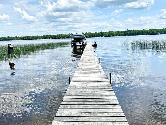 This year-round Pelican Lake house was built in 1986 with six-inch walls and added on in 1995. The lot is level with 100 feet of sand frontage 1.5 acre lot, a detached 2-car garage, a 14 x 20 garden shed, & a 8 x 10 storage shed by the waters edge. The great room has a wood-burning stove, ceiling fan, cathedral cedar ceiling, & cedar walls with large windows on the lakeside. The kitchen is spacious with plenty of cabinets and is open to the dining area. There are 3 bedrooms (two with lakeside windows) and a full bath on one end of the home. The den (spacious guest room) enjoys a lakeside window and the laundry room/ ½ bath is close by. This property comes with furniture, dock, pontoon, & shore station. Pelican Lake has 3585 acres of full recreation water to fish, pontoon, ski & swim, 2 restaurants/bars to boat to, and some of the best lake neighbors you could ask for.