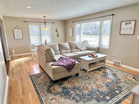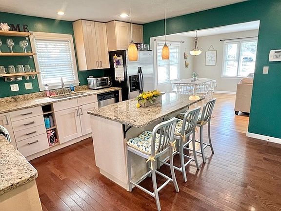Updated and beautiful limestone ranch 2 blocks from Donner Park. Main floor has 3 bedrooms + 2 full bathrooms. Large finished basement w/ family room/home theater, 2 spacious bonus rooms + utility room with plenty of storage. Big backyard + full privacy fence. 2-car attached garage w/ built-in storage/workshop space. The 13x19 finished breezeway with a tile floor is perfect as a mudroom, sunroom, or both! Roof (2022) and windows replaced recently. Large, open kitchen w/ beautiful granite counters, ss appliances + big center island. This home has many quality finishes including a tiled shower in the primary suite, beautiful hardwood floors, newer flooring in the basement, a concrete drive for extra parking +a concrete patio in the backyard. HVAC 2024