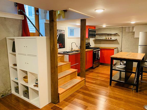 Modern, renovated basement apartment in handsome arts and crafts 1916 Old Portland home in the heart of Clinton neighborhood in inner SE Portland. Rent is 1350 + 100 (monthly flat rate for all utilities including Internet) 2 blocks from heart of Division, with easy access to best cafes, bars, and restaurants. Little T's, Richmond Bar, etc. A few blocks from New Seasons, and a ten minute walk to Hawthorne. Easy to get downtown on Division FX bus, and easy to cycle downtown in ten minutes. Open House: Wednesday, May 7th at 6 pm. Tenant pays $100 toward utilities.