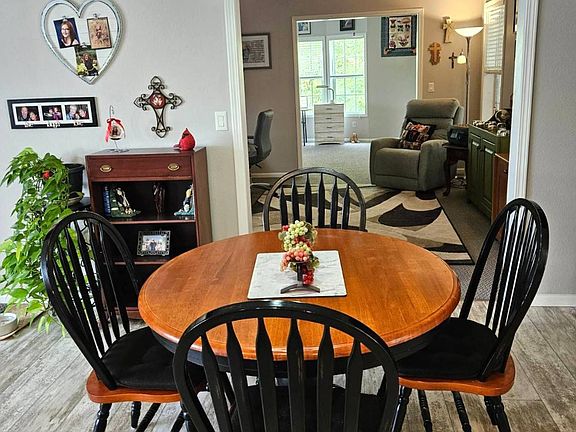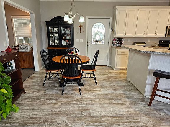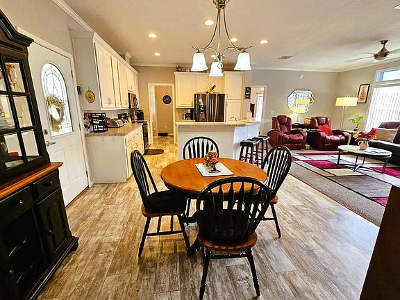 This 3-bedroom plus den, 2-bath home in Cypress Lakes Village (phase 12) offers 1,728 sq ft of living space on leased land. Built in 2019, this Jacobson model features an open and split floor plan, textured walls, Thermopane windows, crown molding, recessed lighting, stainless steel appliances, a laundry room and a water softener. The home has 9 ft ceilings and carpet and vinyl flooring throughout the home. The primary suite is large and includes a walk-in closet and an ensuite with double vanities and shower; the guest bath has a shower. Additional features include: a 35x20 carport (for multi-vehicle parking), a 13x20 screened patio, a 12x16 shed, and a 25-ft den ideal for crafts or recreation. The home has wooded views, is offered partially furnished, and a golf cart is included. The home is on leased land; buyers do not own the land and must pass a background check, credit check, and meet financial requirements to obtain park approval to reside in this community. Residents pay a monthly lot lease ranging from $1100.00 and up and age restrictions apply. The fees include the use of two pools, two hot tubs, a fitness center, tennis courts, bocce ball courts, pickle ball and horseshoes and access to the clubhouse. The community also has an onsite Bar & Grill which features daily specials and monthly entertainment. Included are lawn mowing, biweekly trash pickup and a 24-Hour staffed guard gate. The community has two18-hole golf courses where residents may purchase membership or a 'pay as you play' option. All listing information is deemed reliable but not guaranteed and should be independently verified through current rates of lot rent, fees, or pass-on costs associated with the community, park, or home from the community manager.