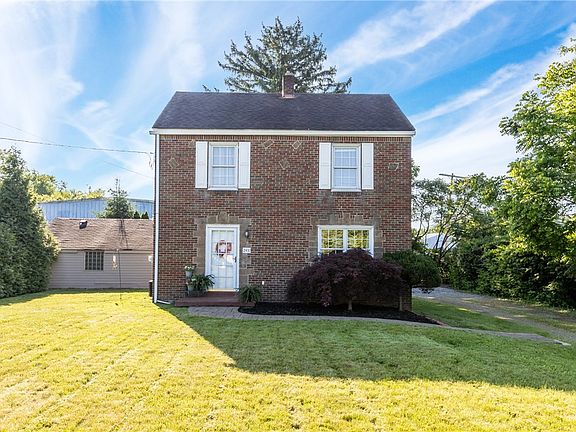 Welcome to your gorgeous all brick colonial home located just off of I-79 and close to dining, shopping, and entertainment. Beautiful original front door and hardwood floors throughout the home with plenty of space and light. New HVAC, attic fan and insulation plus existing anchor system for the porch. Downstairs features a separate dining room, comfortable living room space with a relaxing wood burning fireplace and a spacious kitchen. Stunning wrought iron railing on the stairs leading upstairs to an updated bathroom, a spacious master bedroom with a walk-in closet and another large bedroom for guests. There is an abundance of storage space in the clean basement and laundry area. Plenty of off- street parking, as well as a large, 2 car detached garage. Level and open yard space surrounds the home. Don't miss out on this special home!