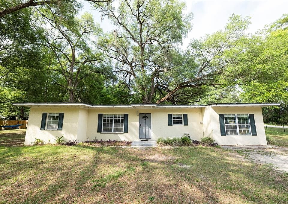 This charming home in High Springs features 3 bedrooms and 1 bathroom spread over 1,142 sqft. As you enter the home you will come into the living room that is filled with light and connects to the kitchen. There is plenty of storage as well as stainless steel appliances. There is tile flooring throughout the home, including the master bedroom that boasts a walk-in closet as well as a large window. The bathroom has a walk-in shower and tile accents that bring a warmth to the space. This home has an added bonus room with ample amounts of windows that make for a lovely office or studio. The large lot lends itself perfect for gardening and growing food with the south facing exposure. The home is nestled in a quaint corner of High Springs surrounded by nature. It has ample amounts of space to store an RV or a boat. It is in walking distance to downtown and a short drive to Oleno State Park, Rum Springs, Ginnie Springs, the Santa Fe River and Gainesville.