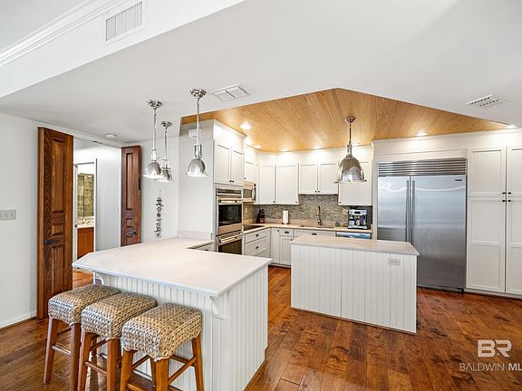 Experience the ultimate in beachfront living at this stunningly updated 3-bedroom, 2-bathroom unit in the prestigious Romar House Condominiums. This unit offers breathtaking panoramic views of the sparkling waters and sugar-white sands, creating a serene coastal retreat. Step inside to discover a beautifully renovated interior, where modern elegance meets coastal comfort. The kitchen is a chef's dream, complete with updated countertops, stainless steel appliances, and ample cabinet space. You do not find kitchens this spacious in many gulf front condos! The master suite offers a peaceful with views overlooking the Gulf. The en-suite bathroom is beautifully appointed with a dual vanity, a soaking tub, and a separate shower. Two additional bedrooms provide comfortable accommodations for guests, while the bunk alcove adds a whimsical touch for extra sleeping space. Outside, the balcony is the perfect spot to relax and soak in the stunning views and gentle sea breezes. The Romar House community offers a host of amenities, including a gated entrance, a swimming pool, tennis, exercise room and direct beach access. Located in the heart of Orange Beach, this unit is just minutes away from a variety of dining, shopping, and entertainment options. Whether you're seeking a peaceful retreat or a vibrant coastal lifestyle, this updated unit at Romar House offers the perfect blend of luxury and convenience.