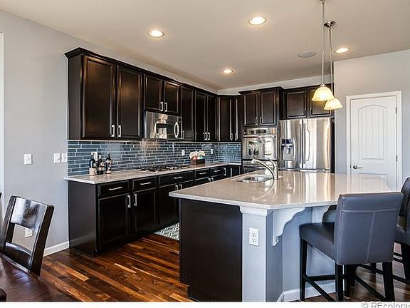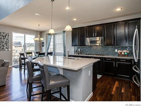 Welcome to this beautiful home that offers an open floorplan and great space for entertaining - inside and out! The kitchen features silestone counters, 42" cabinets, 5-burner gas cooktop, double ovens, pantry and an island with seating plus dining room. Flows from kitchen to dining to great room with soaring 18' ceilings and a wall of windows flooded with natural light, a gas fireplace and surround sound. There is an office on the main floor and formal living room. Upstairs you will find a tranquil Master Suite with a 5-piece bathroom and walk-in closet. There are 3 guest rooms, one with an en-suite, and another full hall bath. Laundry is on the upper floor with the bedrooms. The basement features a wet bar and media room or man-cave with TV with surround sound - perfect for sports and/or movies. Enjoy the infrared sauna, and there is a guest room and full bath. There are two storage areas. Take the festivities oudoors to the magnificent covered patio with surround sound and sunshade. Roast the marshmellows by the firepit and enjoy veggies from the garden bed. New light fixtures, dimmers, Ecobee thermostats (2) with sensors, outdoor cameras (6), Ring video doorbell and lights at master bed with dimmers. Meritage Homes builds homes that are energy efficient. The garage has a workshop with cabinets, multiple shelving for extra storage. Walk to the pool and park, acclaimed Cherry Creek Schools and close proximity to Southlands Mall and easy access to E-470 and DIA. Showings will begin Friday 7/17/20. Solar panels are leased.
