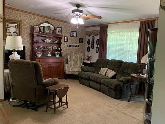 Location! Location! Location! This wonderful 3 bedroom 2 bath home is being offered with 5 acres (m/l) and sits back off of the highway for a perfect setting! Large open living space with a large master suite with double closets. An attached 2 car garage heated by an exterior wood stove that is currently being used as office/work area! Beautiful view from the back deck and some outbuildings on the property! Call today for more information and to set up your own personal showing as properties like this don't last long!