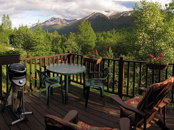 Great home on large private lot. Sweeping views, and southern exposure on over an acre in Eagle River Valley. New flooring in all living spaces. Three bedrooms plus office space, family room and 2 1/2 baths. Sauna, well-maintained large yard and perennials. Quiet, low density housing area. Pet upon approval.