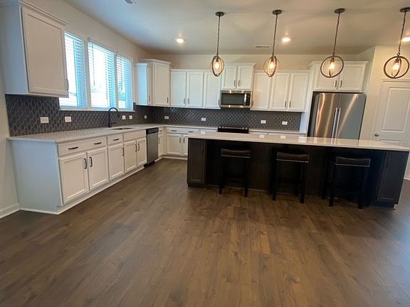 Open floorplan. As you enter, the double door office is just off the foyer. The kitchen features a large island, quartz countertops and stainless steel appliances that include a gas range. There is ample cabinetry for storage space along with a pantry just off the kitchen. The primary bath has double vanities, a private water closet, separate shower and garden tub. Each bedroom has a walk-in closet ceiling fans for added comfort and blackout curtains. The main level is luxury vinyl plank and the entire home has been custom painted.