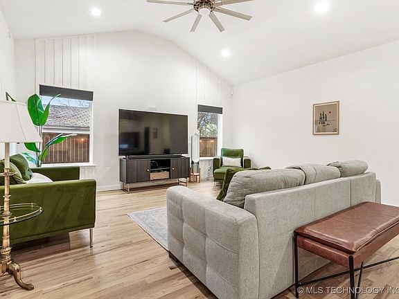Spacious like-new home with open-concept floor plan in the Renaissance neighborhood in midtown Tulsa. Convenient to downtown Tulsa and within walking distance of the Mother Road Market, the Tulsa Athletic Club, and the University of Tulsa. Previous owner more than doubled the size of the house in 2021 when this vintage home was gutted and remodeled with all new vinyl windows, HVAC, electrical, and plumbing systems. House was added on at the front and at the back with totally new roofline. Brumble Construction then upgraded the home for the new owners and made significant improvements and more renovations. Amenities include spa-like master bath with heated floors, solid oak floors throughout the house, ATT high-speed fiber-optic internet. Enormous master closet is another room in itself and connects to the laundry room. Both bathrooms have double vanities. Special Renaissance Neighborhood Character Overlay Zoning allows for Accessory Dwelling Unit (ADU) or tiny home on this lot. Concrete driveway was permitted and expanded before the innovative Renaissance Neighborhood Character Overlay was implemented in 2022, so there is plenty of legal, off-street parking. Quartz countertops in kitchen with Craftsman-style cabinetry and huge pantry closet. House has buried power lines, a new breaker box, whole home surge protector, and a generator port on the outside. Home is monitored by ADT. Smart Home on all doors. New subfloor and supports throughout the house with temperature and humidity monitored crawl space. New Leaf Guard gutters and French drains divert water to the street. Back yard has water line and 50-amp plug for a welder, a shop or a shed.