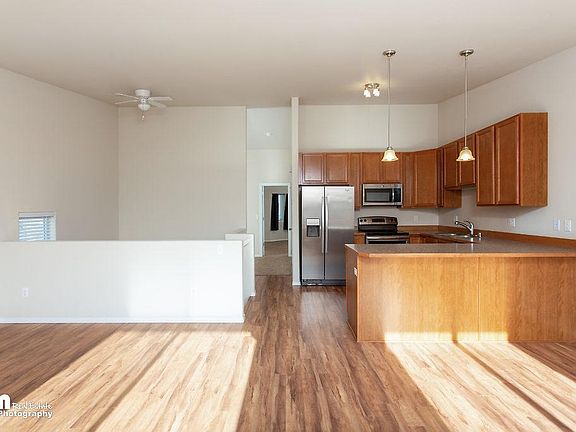 PENDING I'm sorry if I don't get back to you; I'm overwhelmed with responses If you don't want to pay for Zillow application, send me your email and I will send you one myself. I didn't know Zillow made you pay an application fee every time. Pictures are of right unit, but the listing is for the LEFT unit. The floorplan is flipped, but everything else is identical. This unit is identical to the pictures, except that it is a MIRROR floor plan. This listing is for the LEFT unit. Like new, this unit is located off Dowling and Lake Otis in a quiet neighborhood. This unit is over 1500 sq ft, with an open floor layout, vaulted ceilings, 3 bedrooms, 2.5 baths, an office area, gas fireplace, extra large 2 car garage, extra parking, a large fenced backyard, and top floor views of the Chugach Mountains. Upstairs is the kitchen, dining & living area, office, and master bedroom. The kitchen has stainless steel appliances, and a large pantry. The kitchen and living area has laminate wood flooring, as well as large windows with a southern exposure, allowing lots of natural light. There's a small balcony overlooking the backyard as well. Pictures don't do justice to how cheerfully sunny the units are, especially in the winter. The master bedroom has a large walk-in closet, and a private bathroom with double vanities. Downstairs you have two bedrooms, a hallway closet, a shared full bathroom, and washer & dryer. One of the bedrooms has sliding glass doors to the backyard, and a small deck. Duplex is a minute away from the New Seward highway, and close to amenities, grocery stores, and shopping centers. Downtown Anchorage, and park trails are less than 10 minutes away. Easy to get to JBER via highway to Government Hill gate, or local roads to Boniface gate. Very central and convenient location. Rent includes water, sewage, and snow removal. Tenant pays electric, gas, cable, etc. Application process: credit check, criminal background, proof of income, references. Will ask for a pre-qualifying questionnaire prior to showing. No AHFC. No Smoking Owner provides water, sewer and snowplowing Pets upon approval, but tenant will have to take care of lawn maintenance, if living with approved pets