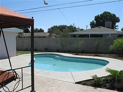 Wonderful re-model, updates include A/C (07/16), New Roof in 2016, blown in insulation to walls and attic (2016), New Solar Panels in 2022 - Paid and owned. windows 2009, custom baths with designer tile, rainglass shower doors, updated paint, fixtures, doors, fans (08/09), gorgeous wood floors throughout (refinished) light and bright kitchen with new (08/09) Maytag appliances, custom floor and counter tile, wonderful Las Vegas style backyard with pool. Living room with fireplace pellet stove, family room with wood stove fireplace, large tiled eating area overlooking pool.