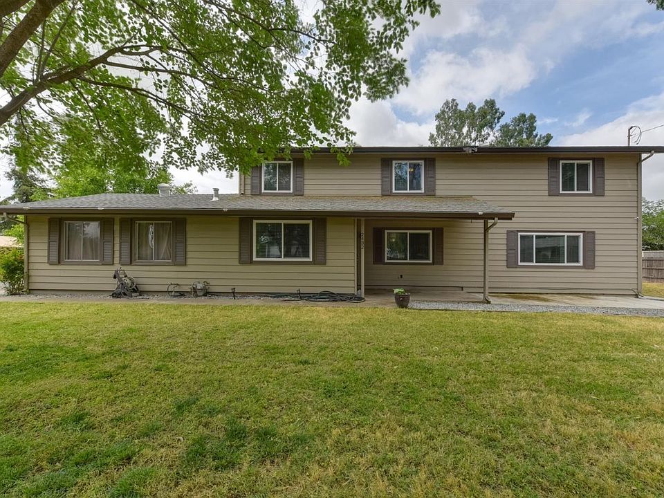 Beautiful big home sitting on over an acre lot. Over 2700 sq.ft. 2 story 5 bedrooms and 2 bath. Lots of room for entertainment, shade, and parking. Kitchen with granite counter top, kitchen eating area, separate living, family room and dinning area. Newer carpet and interior paint. Newer dual pane windows through out home. Newer concrete and covered patio in back yard with ceiling fan and light fixtures. Updated cover for septic tank for easy access. Too many to list. Must see today.