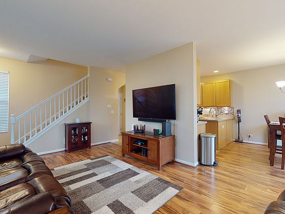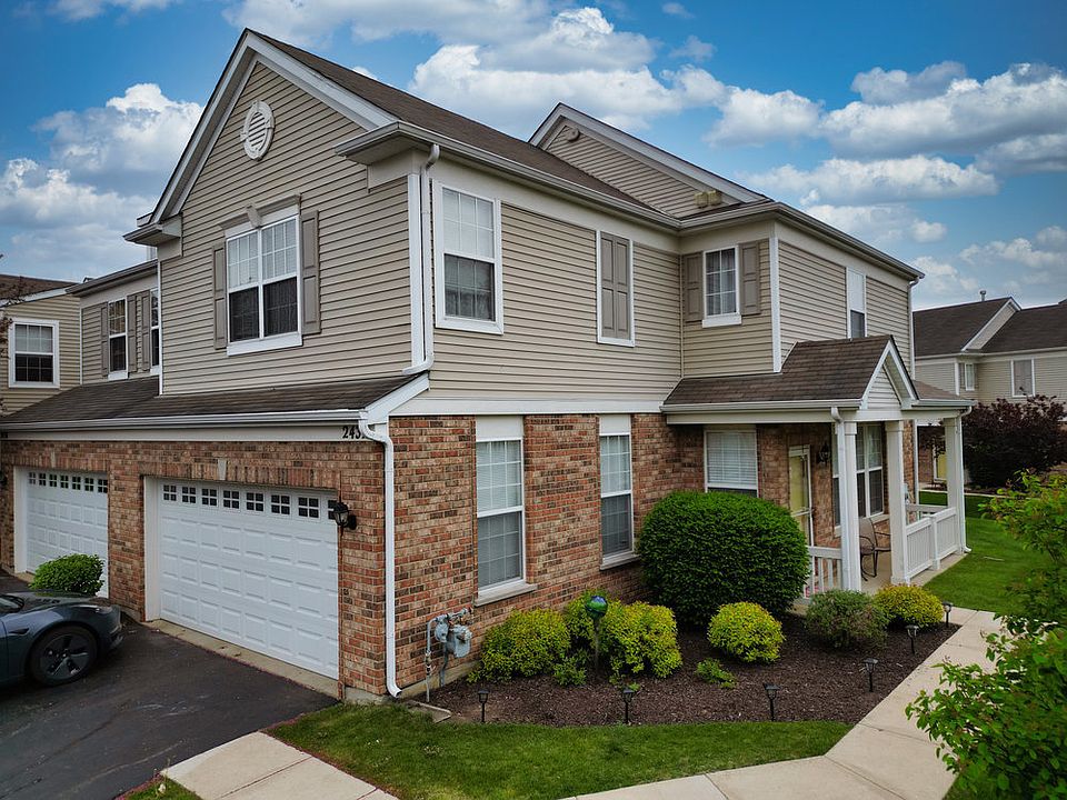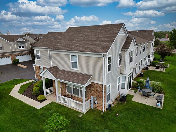 This impeccably maintained and freshly painted 3 Bedroom/2.5 Bath END UNIT townhome in Evergreen Park is ready for new owners! The lovely covered front porch welcomes you as you enter through the private entry into the open concept main level. The spacious & sunny Living Room with wood laminate floors easily flows to the Kitchen and Dining Area highlighted by sliding door to the back patio. The Kitchen features plenty of counter space and newer stainless steel appliances! Three bedrooms upstairs including the Primary Suite with vaulted ceilings, private bath and two walk-in closets! Conveniently located laundry room and full hall bath complete the second floor. 2 car attached garage with added overhead storage and 50 amp nema 14-50 commercial outlet for EV charging. All of this located in close proximity to all of the shopping and dining the north route 31 corridor of McHenry has to offer!