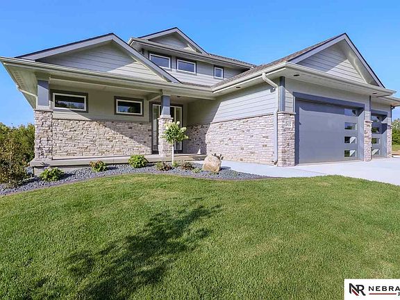 This fresh, never occupied home is now better than ever & open for showings! Present basement finish adds 1,020 finished sq ft to this already spacious home that is not only beautiful but loves function, including main level master suite, large walk-in kitchen pantry with work station, over-sized laundry room & locker area, finished office & loft, huge master closet, as well as walk-in closets in all bedrooms. Basement finish includes full bath, large bedroom & walk-in closet, bar & beverage center with-in large living & recroom area with same high quality finishes as upper levels. PLUS even more extras of a zone damper HVAC system, 2 - 50 gallon electric water heaters, timber tech decking, linear gas fireplace, spacious 3 car garage & full landscaping complete with sprinkler system. See for yourself the perks of living on this peaceful cul-de-sac in this friendly community with reasonable tax levies, ALL within a fast & easy commute of the Omaha Metro, Elkhorn & Fremont.