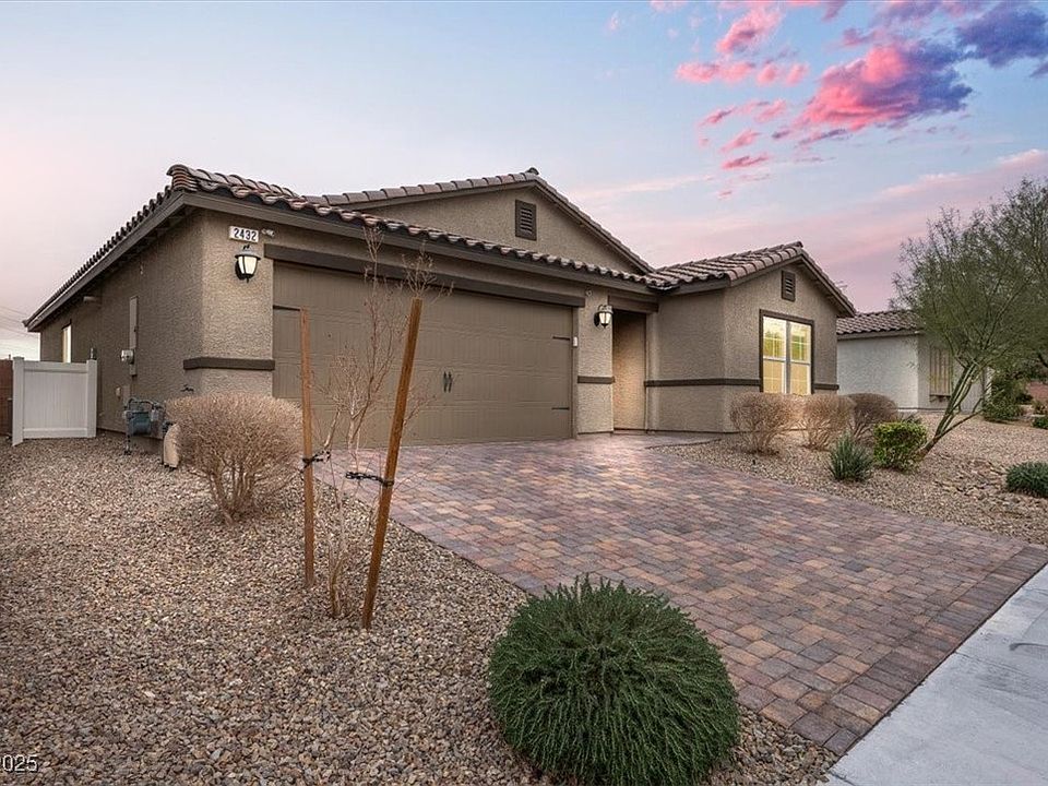 Come see this beautiful, newer single-story home with possible RV parking space, just minutes from the Strip!! The open-concept great room features tile flooring and flows seamlessly into the upgraded kitchen, complete with a spacious island, stainless steel appliances. pull-out cabinetry, and a spacious walk-in pantry. The generous primary suite boasts a large shower, dual vanities, and a walk-in closet. This perfect floorplan is complete with two additional spacious bedrooms on the other side of the house and a separate laundry room . Outside you'll find an expansive, beautifully landscaped backyard—perfect for entertaining, relaxation, or even a future pool! With plenty of space to make it your own, this backyard is a true standout. Enjoy features such a fully paid water softener, security system with cameras, a tankless water heater, and a pet park within the community. Plus, no neighbors across the street for extra privacy! Schedule your private tour now!
