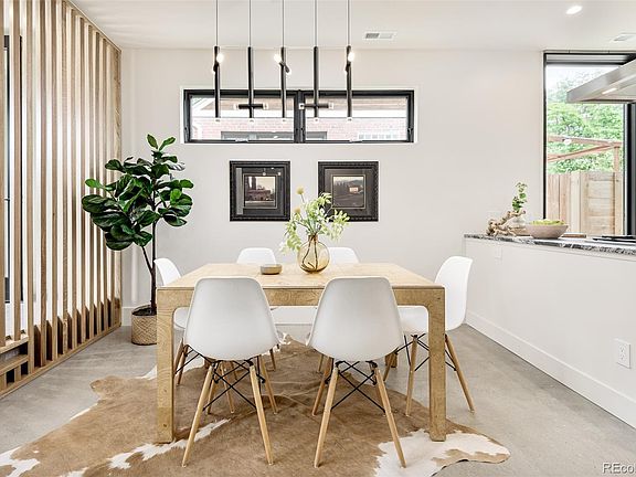 DavisUrban - New Build duplex in Sloan's Lake! Design + function are at the forefront of this stunning home. The modern facade sets the stage for the sleek interiors. A private home office sits at the front with stylish concrete floors leading the way through the open main floor. The dining room is open to the gourmet kitchen featuring Bosch appliances, soapstone countertops with custom cabinetry and a seamless wall of extra cabinet space to accommodate all of your storage needs! A comfortable and chic living room is flanked by a concrete and stone wall + features a cozy gas fireplace. Rounding out the main floor is additional storage off the back of the house and a discreet guest powder room. Up the open wood and iron staircase sit your generous bedrooms. The primary suite is at the end of the hallway with soaring vaulted ceilings, a walk-in closet and well-appointed bathroom with a soaking tub, glass surround shower and double vanity. There are two additional secondary bedrooms on this floor with a shared hall bathroom. Spacious and elevated, this bathroom has a double vanity, custom tile and modern fixtures. Capping things off is a great room atop the third floor - perfect for gatherings and restful nights at home lounging. A balcony sits off the great room with sliding glass doors allowing in light and fresh air. The yard is low maintenance with plantings and a backyard patio + 2 car garage. Be the lucky owner of this enviable Sloan's Lake duplex.
