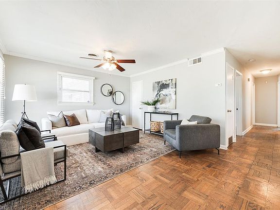 Cozy and classic 1950's ranch in one the most accessible locations to all of your favorite and soon-to-be favorite spots in town. Greeted by a lovely, shaded front porch, you will instantly feel right at home. Once inside, the open living, dining, and kitchen make both entertaining friends and quiet, casual nights at home extremely functional. The vintage, parquet wood floors that extend throughout are just one of many original features that have been retained. The living and dining areas are spacious and comfortable. The kitchen has been updated with granite counters and stainless steel appliances and has a convenient bar for additional prep, serving, and storage space. There are three bedrooms, all with wood flooring and nice closet spaces. The hall bathroom has an adorable pedestal sink and separate makeup vanity. The second, multifunction bathroom is also home to the laundry connections. Attached to the primary suite is an intimate office space when focus is required. Also adjacent to the primary is a bright and functional sunroom (not included in sq ft). Just outside is a practical storage room for odds and ends that can't find another place. The back patio is partially covered, while the backyard has tons of space for gardening or play. The location is tough to beat, within walking distance of the Belle Isle Library and the exciting new OAK entertainment destination, and convenient to Target, the updated Mayfair Plaza, the 63rd & May corridor, and Penn Square Mall. This area is exploding with new life.