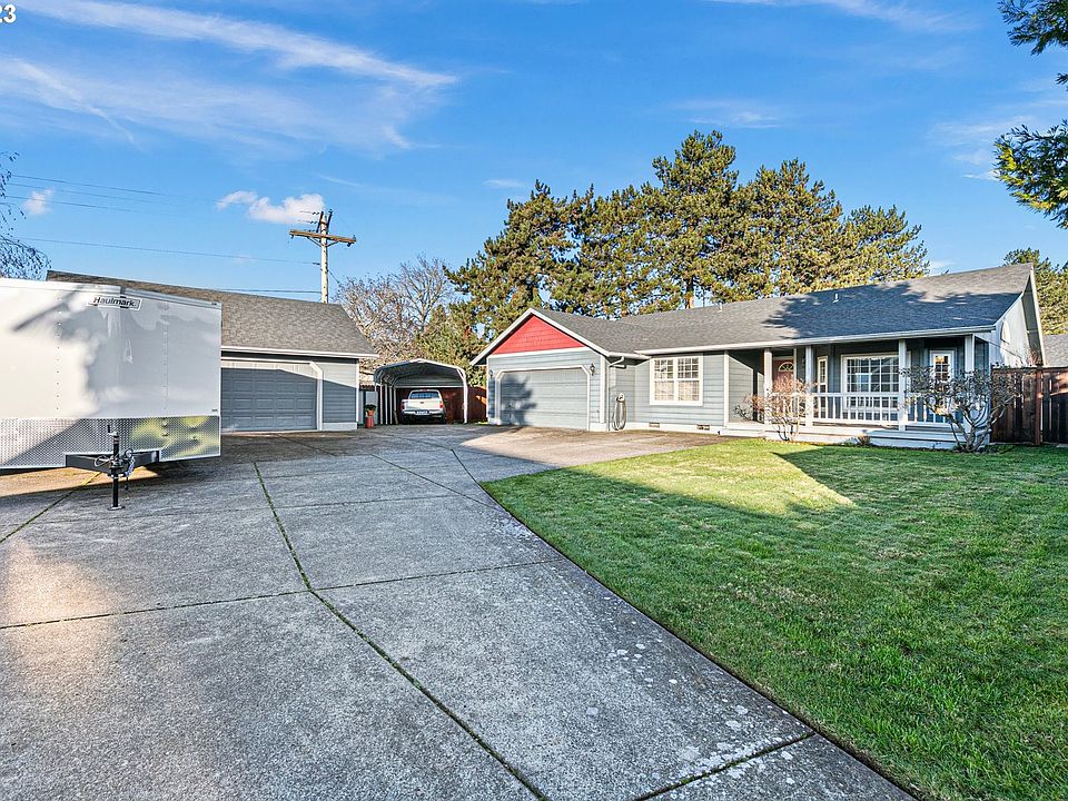 Beautifully maintained home in Hayden Bridge. Located down a private flag lot that backs up to Briggs Middle School. 3 bedrooms and 2 full bathrooms. This home features a cozy living room with tall vaulted ceilings, decorative lofts and a propane log heater. In the primary suite, you will find a large walk in closet, bathroom with a walk in shower, and double sinks. Indoor laundry room. Washer and dryer are included. The kitchen is nice and bright with new LED lighting. The dining room has a large sliding glass door that opens into the meticulously manicured, fully fenced backyard with a covered deck, hot tub, and underground sprinklers. If you are looking for a home with space to store your boat, RV, or car collection, this home is perfect for you. Besides the attached 2 car garage, there is a covered carport, garden shed, and a large shop with 220 V power, heat, abundance of storage, concrete flooring, and a garage door opener. There is also a covered storage area behind the shop. Come take a look, homes like this one won't be available for long.