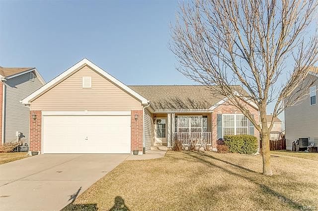 STUNNING ranch with all of the upgrades completed. Let's start inside with the vaulted ceiling in the family room with bay window that opens to the eat in kitchen with breakfast bar, Corian countertops, stainless appliances, large pantry, separate spacious laundry room, and planning desk area. The main floor bedrooms share an updated full bath and the spacious master bedroom has a walk in closet and a full master bath with upgraded vanity! But wait until you see the bar downstairs! Custom built with stone, the bar in the finished basement has a refrigerator and flat screen tv mounted that both stay. The large living room is perfect for not only the sectional sofa, but even big enough for a pool table! There are two bonus rooms already finished perfect for at home offices or rec room along with a half bath. The back yard has a patio (pergola to stay) and is fenced. The community pool and both ponds are just a quick walk down the street. Minutes to Scott Air Force Base!