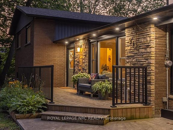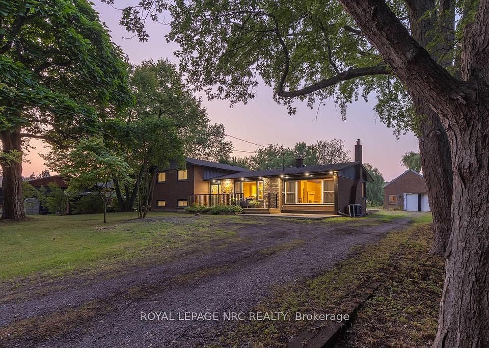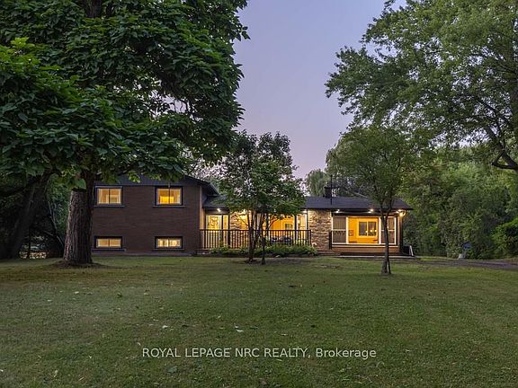 Set back from the road and known affectionately as "The Willow Pond" house, this is a 1.2-acre haven that feels miles away but keeps you close to everything that matters. You'll feel the rhythm of life with wide open spaces, mature weeping willows, and a private pond that brings wildlife in the warmer months and skating adventures in the winter. The property stretches generously both front and back, offering quiet corners and open lawns to enjoy year-round. Whether you're relaxing on the front porch or gathered on the back deck, the outdoor lighting casts a warm, inviting glow long after the sun goes down. Step inside the home to a welcoming foyer and a thoughtfully designed side-split layout. The main floor flows from the living room, anchored by a large window, into a light-filled dining area with doors to the backyard. The kitchen overlooks the yard and features crisp white cabinetry, stainless steel appliances, and an island that invites conversation, meal prep, or quiet morning coffee. Just off the dining space is a beautiful sitting room with wood beams overhead, a fireplace, and a picture window that frames the outdoors like a painting. With its own exterior access, this room also works well as a mudroom without losing its charm. Upstairs, 3 bedrooms offer double closets and lovely natural light, while the refreshing 3-piece bath features a deep tub, double sinks, and a large vanity. On the lower level, there's a cozy rec room, a 4th bedroom, and another 3-piece bath with a glass shower. The basement offers great potential as a workshop or storage space, with existing shelving already in place and plenty of room to customize. 2432 Port Robinson Road is a home that inspires you to grow, gather together, and savour every season life has to offer. Updates: Fridge, Stove, Washer (2024), Windows, Plumbing, AC, Kitchen, Bathrooms, Decks, Water Supply/Waterline from Cistern (2022), Eaves & Fascia (2020-2021), Furnace (2012)