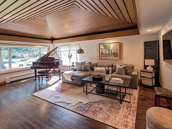 Welcome to Holly Hills and the coolest Mid-Century Modern Ranch Ranch in the neighborhood! Updated with accents of the original architectural features. And the coolest part of the location is, it's in the Cherry Creek school district! Original Geneva metal cabinets, Corian counters, and stainless appliances in the Kitchen. Hardwood floors, pocket doors, built-in cabinetry, architecturally eye-catching living room ceiling with a modern flare, vintage tile and a main floor double-sided fireplace with stacked stone. A kitchen Breakfast nook works well as informal dining or kids home-school workstation. Featuring a pass-through to the dining room with a pull-up serving table, built-in buffet, and access to the spacious covered patio and backyard. This lot and floorplan is an entertainer's dream for parties and small gatherings! Enjoy 3 bedrooms on the main floor, a vintage guest bathroom and a fully remodeled master bathroom! The fully finished basement includes a happy ?? bath, laundry, Gym area, and a sound-insulated media room with surround sound. An oversized 2 car garage that faces south west for easy snow melt and sunlit warmth coming in the front windows! Both Air Conditioning (AC- installed 9/20) as well as Radient heating, however, the AC can also do HEAT in case there is ever an issue with the Radiant heat! Located close to everything awesome: including, shops on Hampden and Colorado; Parks and Trails as well as Light Rail and local public golf courses!