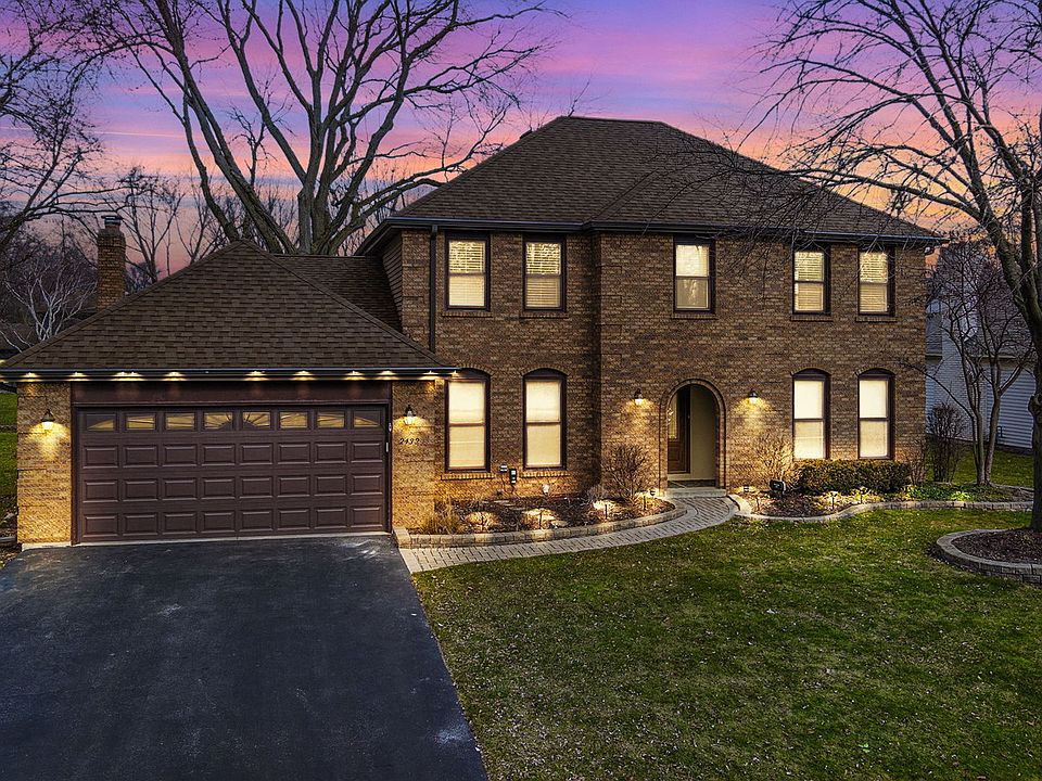 Multiple Offers-Highest and Best due 2.10.24 by 3:00 pm. Nestled in the charming and highly sought-after Oak Hill neighborhood, this impeccably maintained 4-bedroom, 2.5-bathroom brick home offers delightful curb appeal and an unbeatable floorplan for both entertaining and everyday living. Enjoy the recent updates throughout, including new hardwood floors, fresh carpeting, a vibrant coat of paint, and upgraded laundry room flooring. The inviting layout boasts formal living and dining areas with crown moulding and French doors, and a gorgeous, updated kitchen with undercabinet and recessed lighting, stainless appliances, granite counters and breakfast bar that flows into the eating area then inviting family room complete with beamed vaulted ceilings, a wood-burning brick fireplace framed with built-in shelving. Retreat upstairs to the primary bedroom with tray ceilings, walk in closet and lovely private bath. Three more spacious bedrooms with generous closets and main bath. Don't miss the must-have first-floor den, full basement, six panel doors and more fun surprises. Outside, a spacious deck awaits for outdoor gatherings, overlooking the fully fenced backyard where endless possibilities for relaxation and recreation await. Located within the highly rated District 202 Lisle schools, boasting a brand-new elementary school building. You will love the location near schools, parks, shopping, highways, train and more. Don't miss out on the chance to make this house your forever home!