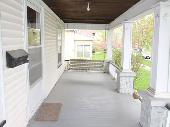 Beautiful craftsmanship in this one family 1921 home. From the ornate oak door welcoming you in to the built-in dining room and linen cabinets, original woodwork, and decorative windows... they don't make them like this anymore! Enjoy summer on your full sized front porch (swing included) watching the roses bloom. Home needs some TLC but that leaves you room to make it YOUR OWN, maybe by refinishing the original hard wood floors. This home features an OVERSIZED 2.5 CAR GARAGE, plenty of room for all your hobbies and seasonal recreation storage. Sewer was repaired in 2023, new water heater 2022. This home is being sold AS IS. Listing Agent is related to seller.