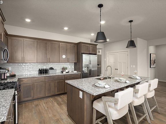 Move-in ready home! Generous financing incentive with use of preferred lender for a limited time! Our previous model home is now available to be your new home! The popular 4 bedroom Endicott floor plan with 3 bay garage, granite counters, upgraded light fixtures, gas fireplace, has Laminate flooring in entry, kitchen, and dining room comes with Tankless hot water heater, Full landscaping front/rear yard with irrigation as well as fencing. The model home includes the washer/dryer and refrigerator as seen in the home.