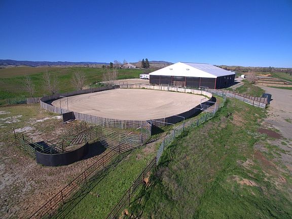 Equestrian Ranch with Country Home for Sale in Yolo County, California Spectacular Equestrian facilities with a beautiful 2969 SF single story home. The main home has 4 bedrooms and an office situated on the property with special views of the equestrian facilities and the expansive valley to the Sierra Mountains. There are also three single-wide mobile homes on the property which are great for ranch hands. The property is nicely located about 20 miles to UC Davis, 35 miles to Sacramento International Airport, and 75 miles to San Francisco. One of the finest equestrian properties in Northern California. Equestrian Features: Horse barn, 27 stalls, Fly spray system over the alley and all stalls, 16-foot alley, Fans for air flow installed, Automatic waters, Barn has lights and electrical outlets, Tack Room, Wash rack indoors with hot water, Bathroom, washer and dryer, Feed room, 24' x 24' Storage room, Walk in refrigerator, Exterior flood lights, Downspouts connected to underground drains, Stall mats are included. Hay Barn: 36' x 40' hay barn attached to the horse barn Covered Arena: 115' x 150', Extra high roof and pitch for air circulation, Lights and electrical outlets, Sand breaking pen with pipe and cedar plank fences and gates, High pressure water outlets for arena, Decomposed granite base under sand - superior base for competitive grade footing. Outdoor arena: 150' x 150', Decomposed granite base under sand provides for all weather use. Turnout pens: 3 large pipe fenced turnout pens, Sand added over the year for all weather footing. Hot walker: 70-foot Preifert free flow. 8 horse hot walker, Electronic controls for programming routines, Decomposed granite base under rubber chip footing, Underground drainage system provides for all weather use, Flood lights, Water system for dust control. Water: 390 foot well, 5,000-gallon storage tank with booster pumps. * Loading chute for semi-trucks and gooseneck trailers * 7 feedlot pens complete with feed bunks and water troughs * Loading dock for feed mixer * Ranch is completely fenced and cross fenced with a combination of 5 strand barbwire fence and pipe fence to provide a total of 12 pastures with multiple gates and individual troughs. * All of the sections of the ranch are accessible in winter due to extensive gravel road improvements throughout. * There are 3 single wide mobile homes hooked up to electricity and septic included. * There are 2 graded and leveled pads between the horse barn and the house for additional pastures, horse pens or shop/barns. * There is a 150' x 150' area besides the indoor arena that is graded and leveled for additional improvements. * Lot of additional leveled area for trailer parking or outside storage. Graded and road base for all weather use. Click Here for Disclosure Packet Click Here for Interactive Map