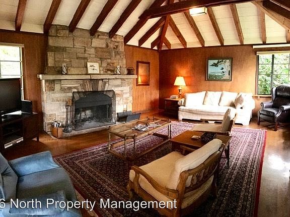 Charming Furnished Carmel Woods Home For Rent - Charming furnished Carmel Woods home offering 2 bedrooms, 1 bath, large living room with vaulted ceilings and beautiful wood beams, gorgeously large Carmel stone wood burning fireplace, formal dining room with peeks of the ocean, wood flooring in living room and dining room. Cozy kitchen offering plenty of storage. Spacious bedrooms and more. The home is set back on the lot offering privacy, a circle driveway and 1 car garage. Looking for a 6 month - 12 month lease or longer. Deposit $5900 (RLNE3176390)
