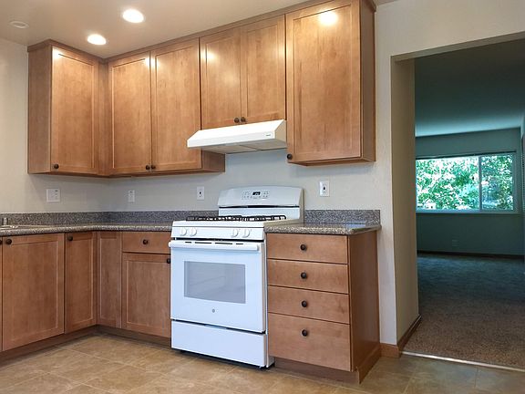 Fully remodeled 2 bedroom/1 bath Fresh Paint New flooring throughout Fully Updated kitchen New Gas Range with self cleaning oven New Dishwasher/Garbage Disposal/Refrigerator Inside private laundry room with washer/dryer hookups Large private deck Remodeled bathroom with updated fixtures 1 Carport spot included Water and Garbage Paid 2nd floor unit Well managed building with few neighbors Easy parking on street and in neighborhood Owner pays water and garbage. No pets, no smoking, rental insurance required.