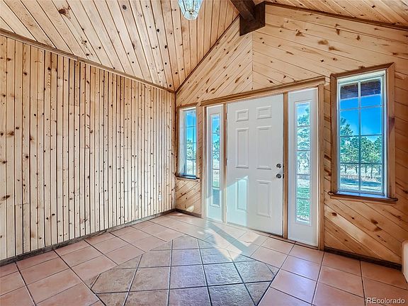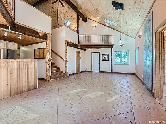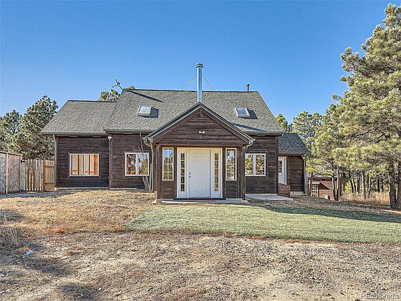 This beautiful cabin in the woods is only 55 miles from the Denver International Airport. Beautiful and well built, the passive solar design is efficient and the in-floor, radiant heat reduces energy costs and provides a cozy feel. Custom woodwork, majestic vaulted ceilings, picture window views and the peaceful covered patio are all nestled on 5.47 acres in the Pines where wildlife abound for your viewing pleasure. The detached garage makes a great workshop plus there is an additional she shed/bunk house. Brand New Stainless Steel appliances, New well pump, New septic tank. Come see all this property has to offer.