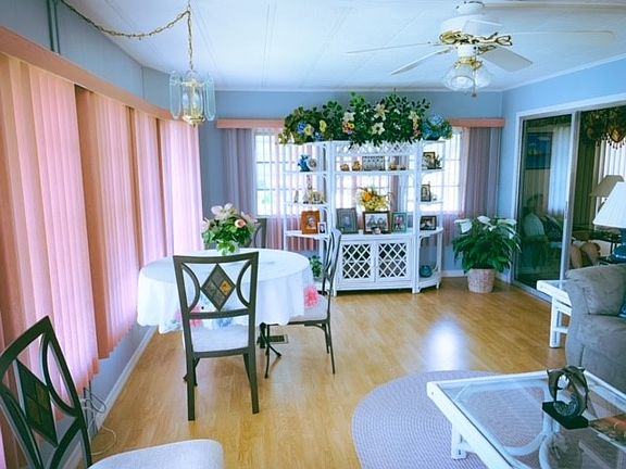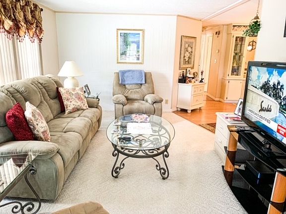 This home is a 2 bedroom 2 bathroom home has been well maintained with a new roofover in 2021. With both oversized Florida Room and screen room, this home is perfect for entertaining family and friends! Both bedrooms are spacious and the master suite includes 4 closets, 1 of which could easily be turned into washer/dryer laundry area. This lovely home has a nice private backyard with shade trees, brick paver driveway, hurricane shutters, and is located on an oversized lot on the corner of a cul-de-sac. Come see what active 55 living has to offer!