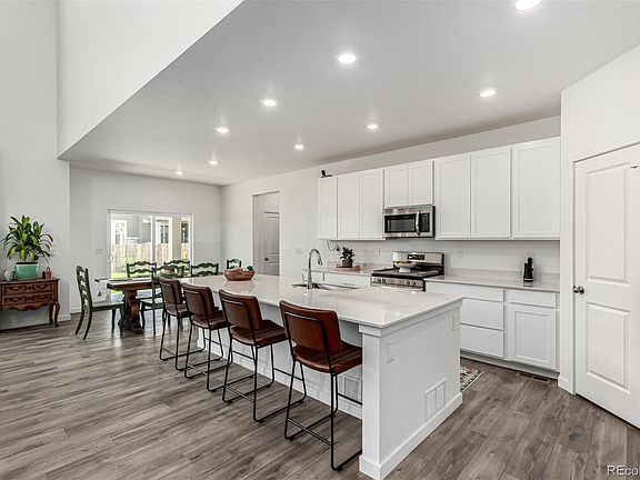 Welcome to your next chapter in the dynamic Waterstone community! This nearly new 2023 home is move-in ready and better than new with brand-new lush landscaping, a fully fenced backyard, and a clean, modern exterior that pops with stone accents and a spacious 2-car garage. Inside, you're greeted by a wide open, light-filled layout with soaring ceilings and a fresh, neutral palette that feels both current and timeless. The expansive main level is designed for connection with a seamless flow between the oversized living area, dining space, and a dream kitchen featuring granite counters, an extended island, stainless steel appliances, and a walk-in pantry. The main floor also offers a flexible bedroom and full bath, perfect for guests, multigenerational living, or your next work-from-home setup. A built-in desk nook adds even more function to this well-thought-out design. Upstairs, the primary suite is a true retreat with a spacious en suite and two walk-in closets. You’ll also find three more bedrooms, two full bathrooms, and a laundry room exactly where you want it, on the same level as the bedrooms. Need more space? The full unfinished basement is ready for your vision, a game room, gym, theater, beds/bath, use to suit. Step out back to enjoy your private, lush yard from a covered patio made for summer nights and weekend hangouts. You'll love the oversized 2+ car garage, featuring high ceilings w/ a tandem extension of an additional 14 feet of depth for toys, storage or workshop space! With seller relocation already underway, this home is ready for a quick close! Easy proximity to DIA, Buckley AFB, I-25, I-70, E-470, trails, reservoirs and Southlands for upscale shopping, dining and weekend fun. Why wait to build? This one is fully dialed in, turn key and move right in!