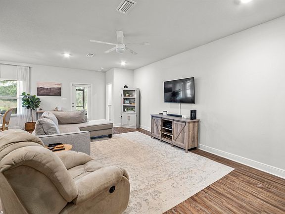 Welcome home to a beautiful Delray Plan 4 bedroom 2 bath home in Daphne's Jubilee Farms. This home backs up to the stocked fishing pond and offers great views of the common space. The open concept living space offers upgraded kitchen hardware, tiled backsplash, and designer lighting. The large primary suite has dual walk-in closets, and a large en-suite bath. Outside there is a screened in porch overlooking the water. The home has a RainBird irrigation system and an extended front concrete entry. The split bedroom plan and oversized laundry room complete this home that is a must see.