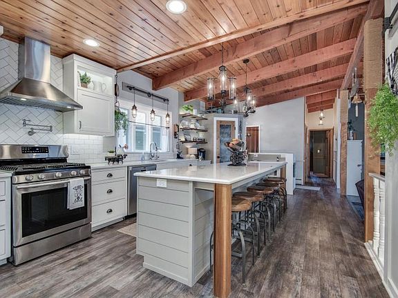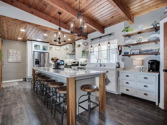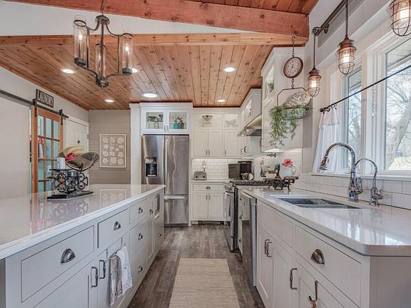 Gorgeous 1-level living w/an amazing walkout view of Maple Lake. Seamless lake access w/no steps. Brand new kitchen is any chef's dream! 1st floor laundry. Gorgeous new floors, spectacular new FP w/splendid lighted cubbies. Shiplap wall in owner's suite and an attached man cave dressed in cedar! Also, brand new central air added just 2 years ago. 1 attached and 2 car detached garage. Extra non-conform BR in LL. So many updates. Move right into this dreamy lake home!