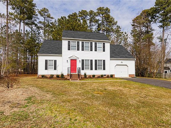 Extensively updated 4 bedroom, 2 bath home w/ 1st floor primary bedroom & 1 car garage in Western Henrico cul de sac! 1st floor has new vinyl plank hardwood floors on entire 1st floor!. Kitchen has been updated w/ granite countertops, new sink & disposal, new stove, new refrigerator, & new dishwasher! Kitchen has eat in breakfast area w/vaulted ceiling & opens into sunroom/ Florida room w/windows all around, overlooking wooded rear yard. First floor primary bedroom w/new HW vinyl plank flooring, WI closet, & bath w/new vanity top & fixtures. The 3 second floor bedrooms are nicely sized & have new pale gray plush carpet; one has double closets, two have walk in closets. The exterior has a new roof ( 2020), new driveway, landscaping, new shutters, new windows, & PVC wrapped exterior wood trim. Most of the vinyl siding has been replaced.. There are also all new interior & exterior light fixtures; The interior has been re-painted in today's color palette! The cul de sac lot is nicely wooded for privacy. In addition to the extensive re-modeling, it is a short walk to dining & shopping. Excellent Henrico County Public Schools include Godwin High! Close to Interstates & upscale shopping!