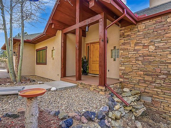 Welcome Home to a glorious mountain-top retreat, nestled just outside of Golden with jaw-dropping, unobstructed views of the Continental Divide. Situated on 3.19 acres, this spacious 5 Bedroom, 4.5 Bathroom home boasts tons of amazing features, including 3 gas fireplaces, wrap-around decks, vaulted tongue-and-groove ceilings, a large eat-in Kitchen, hot tub area in the rock outcroppings, and 4 En Suites! Warm entry-way invites you to a huge Great Room, with formal Dining Room area, and double-sided stone gas fireplace, shared with Living Room. Large Chef's Kitchen, built for families that love to cook. Middle island with cooking sink and wine fridge. Additional island with barstool seating, and a breakfast nook with ample space. Kitchen boasts granite countertops, alderwood cabinets, 3 pantries, a Monogram double oven/microwave/convection set, Viking 6 Burner range, dishwasher, and trash compactor. Main floor guest En Suite with full bath and walk-in closet and main-floor powder room. Spacious Primary En Suite with private deck, big views, a double-sided bed/bath fireplace, and a 5-piece bath. Oversized walk-in closet has quick access to Laundry Room, also accessed from main hall, with more storage and utility sink. Access the main wrap-around deck from Living Room and Kitchen and enjoy stunning white-cap mountain views. Over-sized 3 car garage with TONS of storage space. Owners are conveying their truck and ATV with snow plow with approved Sales Contract. The lower level shows off more gathering space with an entertainment area, game area, walk-out deck and a Kitchenette. 2 more En Suites located here and an additional large bedroom with access to hot tub area. Tons of storage for your gear. In-floor radiant heat with 8 efficient zones. Leased solar panels with owned solar battery backup offers amazing utility savings. 40 Minutes to Skiing and Denver, 25 minutes to Downtown Golden and 15 minutes to Evergreen. See the full site at v1tours.com/listing/54951 for more!