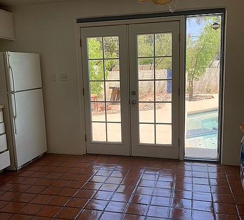 Tucson. Bungalow located in historic Blenman Elm and a 5 min walk to the UA campus or Banner Health campus. Beautifully renovated pool/spa/deck centered in landscaped backyard. Features Saltillo tile floor and wood tongue and groove ceilings throughout; wood burning fireplace; remodeled bath and more. New tankless water heater, pantry and stacked washer dryer. AC & forced gas heater replaced 2 years ago Back and front yards are landscaped with irrigation 2nd back yard ready to develop into guest house, workshop, garage
