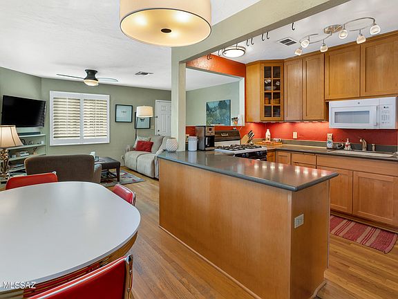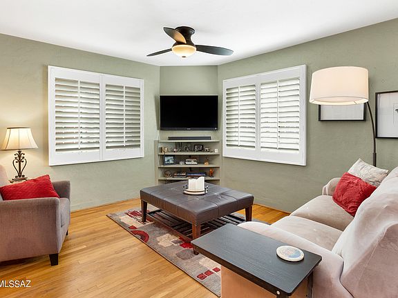 Sometimes amazing things come in small packages and this is one of those times. Besides beautiful hardward floors and updated kitchen, HVAC new in 2015, new roof 2019, new pella windows & plantation shutters 2021, owned solar in 2022; completely replaced all plumbing, new gas water heater. Walking distance to Library, Loft Theater, U of A and many restaurants. This home has all of the charm of an older historic home and the systems of a new home. The back yard is a perfect oasis and not counted in the square footage is a bonus/office room. The only step in the house is a small one into the bonus room. Buyer can apply for historic status. This is a treasure in the historic Blenman/Arizona Inn neighborhood. One small step into bonus room could be easily ramped if no steps desired