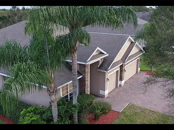 PLEASE BE SURE TO WATCH THE DRONE VIDEO FOOTAGE! Located in the gated community of Alexandria Place is this 4 bedroom, 3 bathroom home with an office and a 3 car garage! When entering the home, the office and the dining room is located to the direct left. The home is updated throughout including granite counter tops, stainless steel appliances, 42" cabinets and stone back splash. Designed with a split floor plan, the master bedroom and spare bedrooms are located on opposite sides of the house. The master bedroom feels spacious and has 10' 4" tray ceilings. Master bathroom has dual sinks, glass shower, garden tub with jets and a walk in closet. Located in the living room is a beautiful stone accent wall, right next to the glass sliding doors that lead outside to the covered lanai area. Located on a corner lot with a partially fenced back yard and brick paver driveway. This is a gorgeous, spacious home equipped with 12' ceilings, recessed lighting and crown molding. The living room is wide open and has plenty of room for entertaining. Take the party outside to the lanai for those weekend cookouts with the family. This home is very tasteful and desirable. Call today and schedule a showing!
