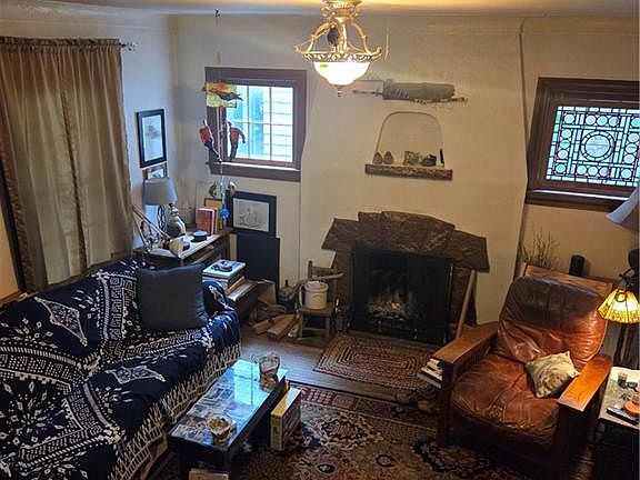 Enjoy the whimsical character in this artist's residence. Natural woodwork & hardwood floors throughout, LR w/ woodburning fireplace & cove ceilings. The formal dining features built in shelves, bedroom 1 is currently used as an art studio. Primary bedroom has walk in closet. Furnace 2016, Roof 2022, some plumbing, newer insulation. Attached garage, lovely garden in yard with deck and shed. Property is being sold as is.