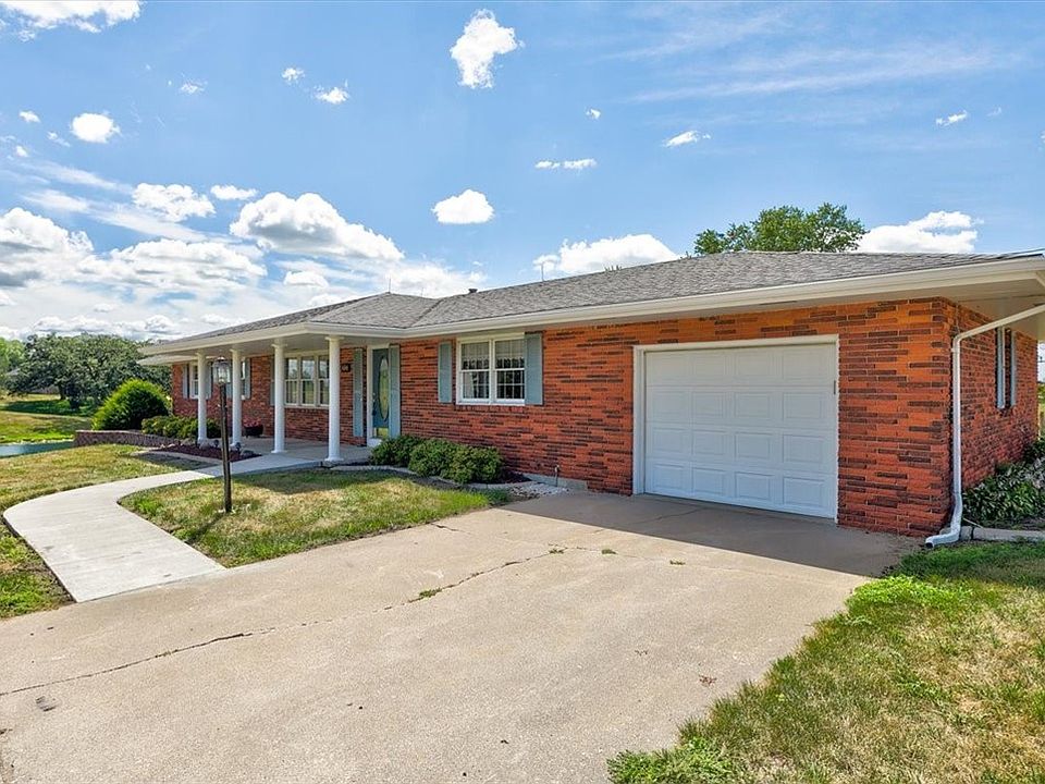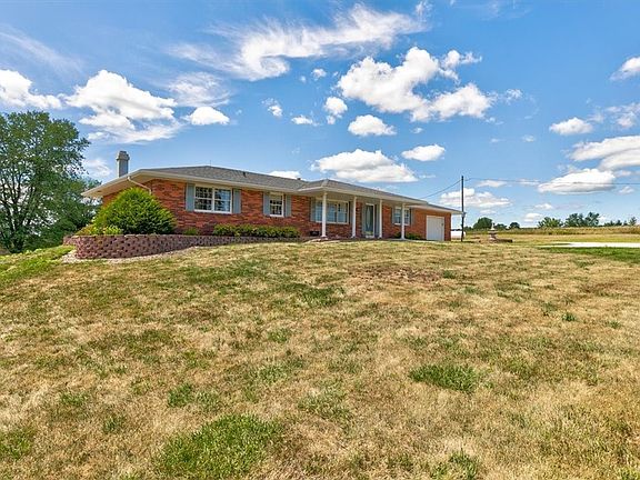Fantastic acreage on hard surface road. This brick Ranch has been meticulously maintained. Over 2100 sq feet on main level. Two bedrooms, but could easily have a third. Covered deck to watch the beautiful sunsets from the west. Stunning views. 1 car attached and 1 under. Two out buildings with electric/concrete floors. Great for all your toys or a Man Cave. Pond is on neighbors land. Property to be surveyed to include 2.5 acres m/l