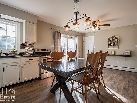Large kitchen with granite counters,tons of cabinet space,rear deck off eating area.New Pergo flooring in living room,kitchen and commercial vinyl in LL family room walk out patio door.Family room also offers brick fireplace with Kodiak wood stove.3 bedrooms with hardwood flooring,1st floor bath with stone tile walls in shower,skylight, new vanity with granite,new lighting,new ceramic flooring.1st fl laundry.4 types of heat, oil hw, electric bb LL, heat pump/central air,wood stove insert. 2 garages. flat lot. Roof credit of 6000.00 with acceptable offer.Down the street from Turkey Hill Inn.Nicholas's mother, Penny Showan is a licenced realtor in Pa.